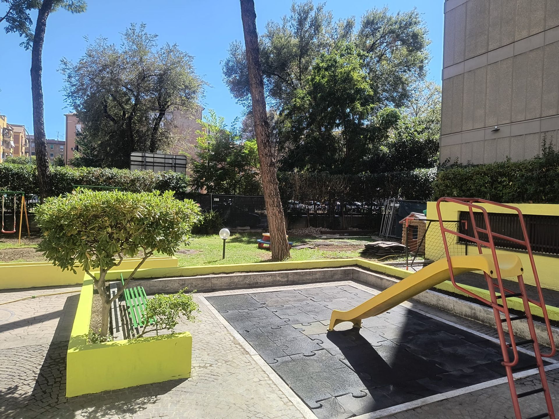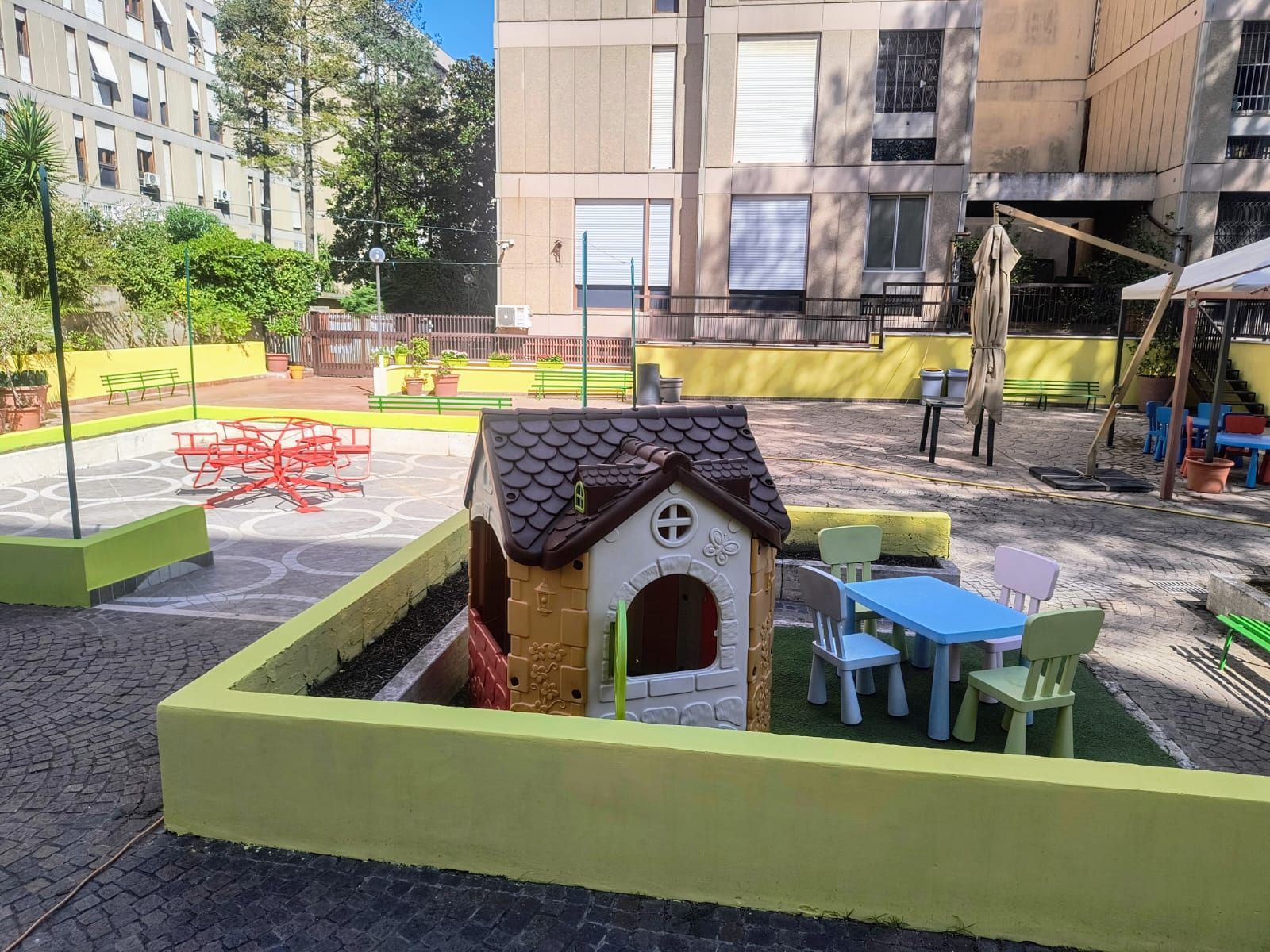 Il grande spazio esterno offre ai bambini percorsi motori, giochi collettivi e momenti di libertà vigilata. Il movimento è essenziale per lo sviluppo psicofisico, favorisce benessere, socializzazione e sicurezza in sé. Giocare all’aperto diventa così un’esperienza quotidiana di crescita, equilibrio e gioia condivisa con i compagni.